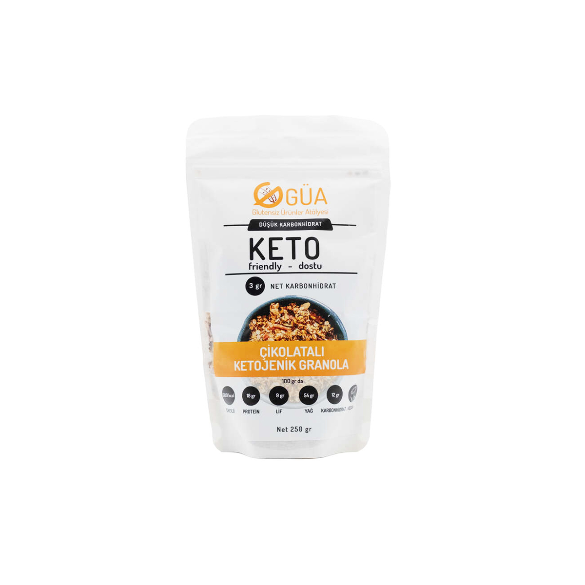 Düşük karbonhidratlı ve yüksek yağ içeriğiyle ketojenik beslenmeye uygun, yoğun kakao aromalı ve doyurucu bir granola alternatifidir.